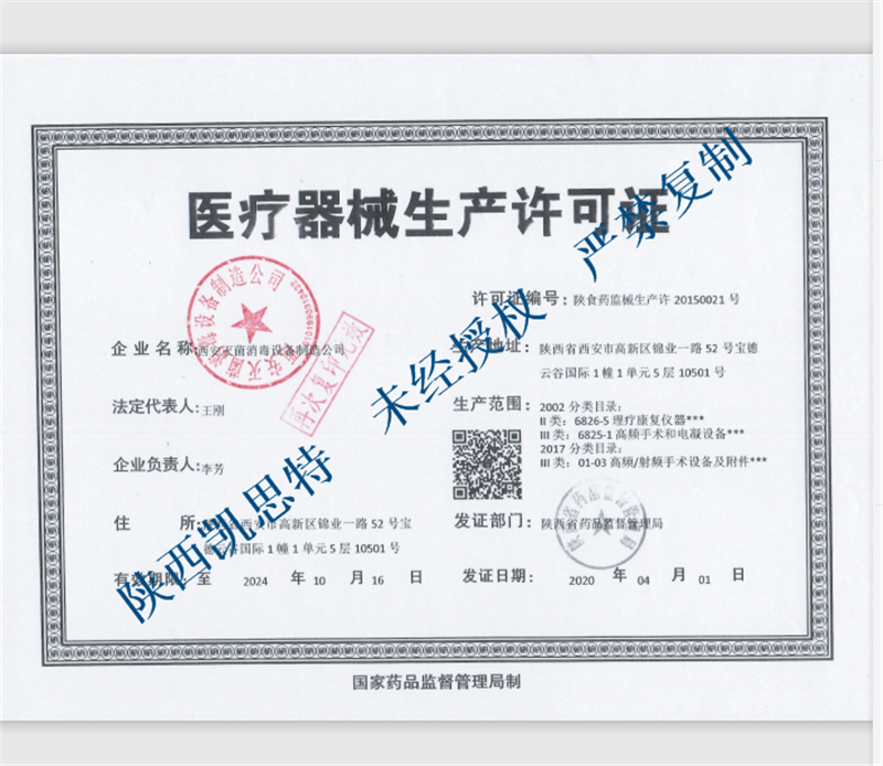 医疗器械经营许可证编号:陕咸食药监械经营许20160178号 第二类医疗器械经营备案凭证编号:陕咸食药监械经营备20160198号