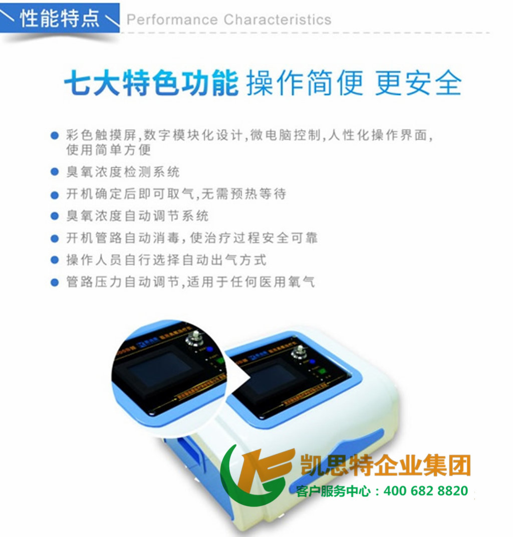 医用臭氧治疗仪JZ-3000B性能特点 ●彩色触摸屏.数字模块化设计.微电脑控制.人性化操作界面.使用简单方便 ●臭氧浓度检测系统 ●开机确定后即可取气.无需预热等待 ●臭氧浓度自动调节系统 ●开机管路自动消毒. ●操作人员自行选择自动出气方式 ●管路压力自动调节.适用于任何医用氧气商品详情