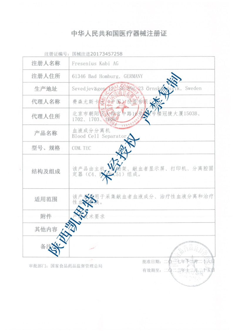医疗器械经营许可证编号:陕咸食药监械经营许20160178号