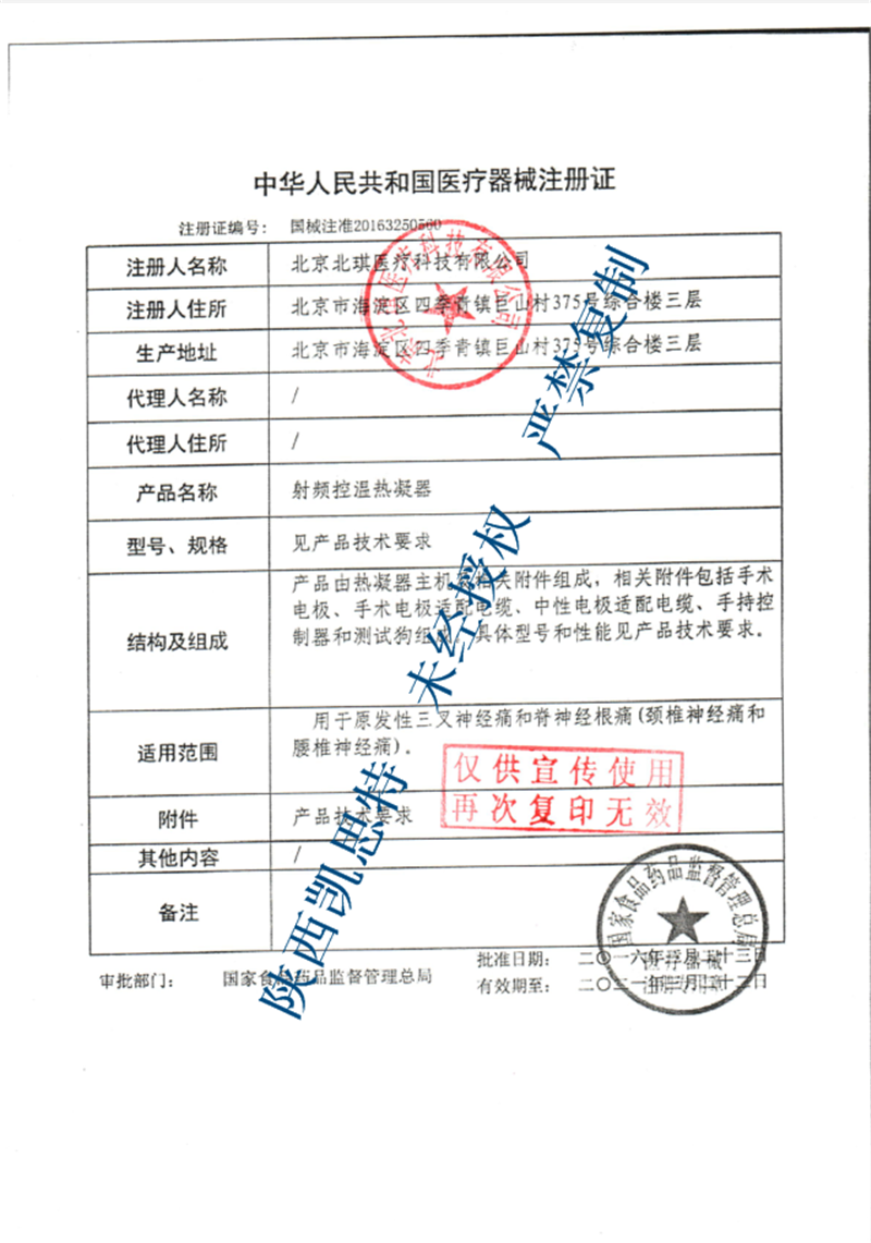 医疗器械经营许可证编号:陕咸食药监械经营许20160178号