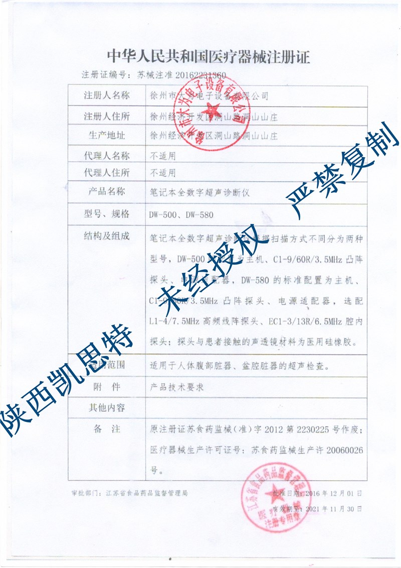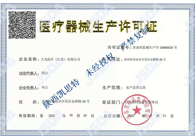 医疗器械生产许可证编号:苏食药监械生产许20060026号